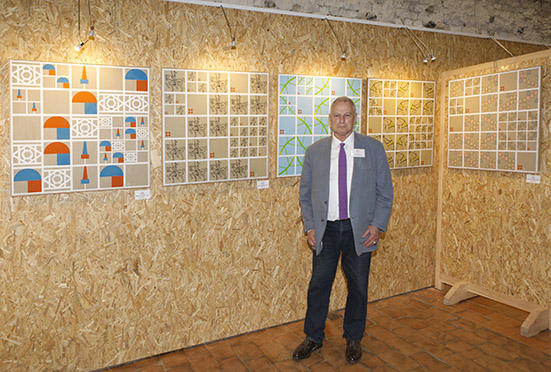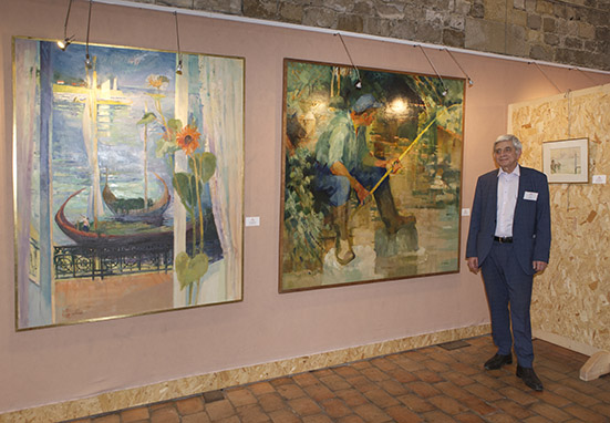 Pierre COLLOMB devant les oeuvres de son père Paul
